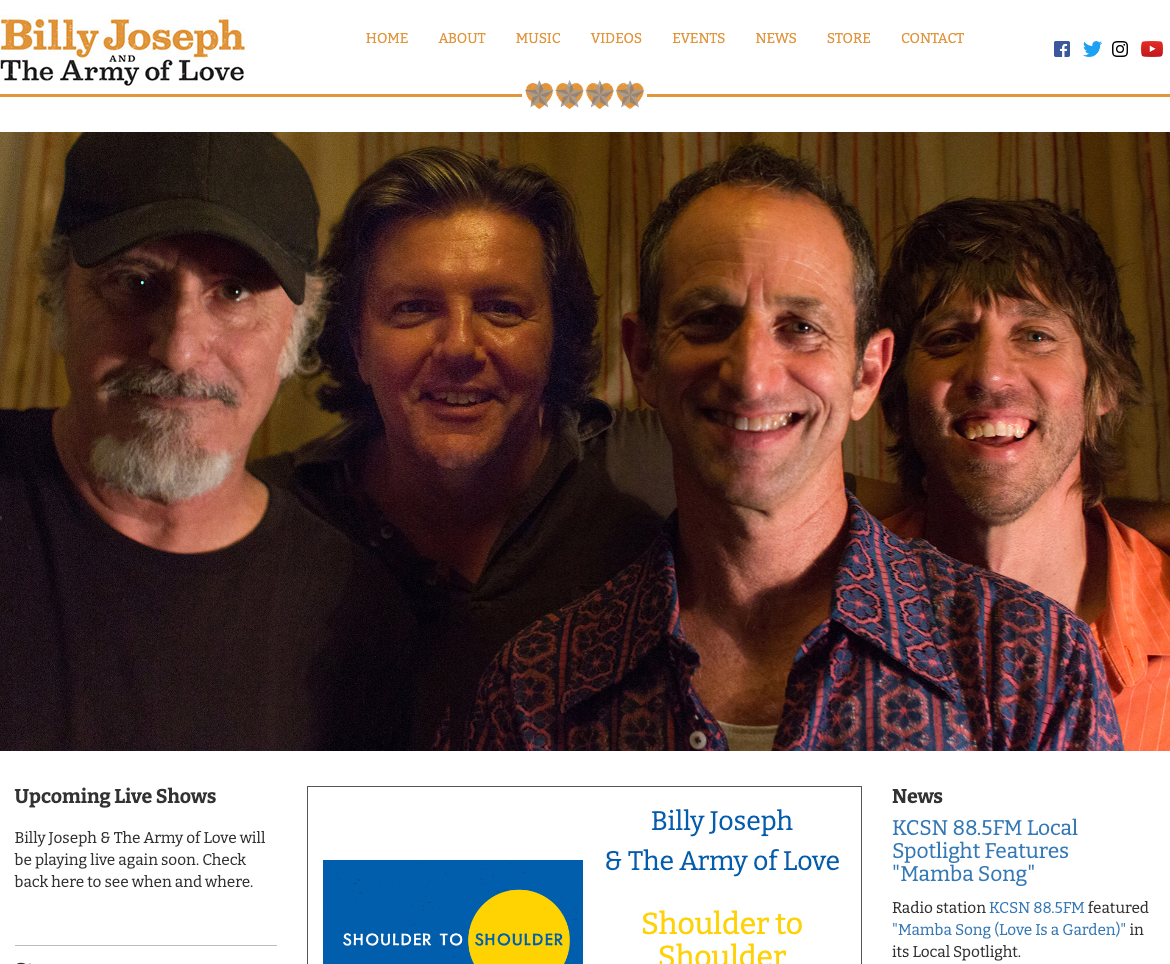 This custom site for musician Billy Joseph includes a jQuery music player, embedded YouTube videos and an event calendar.